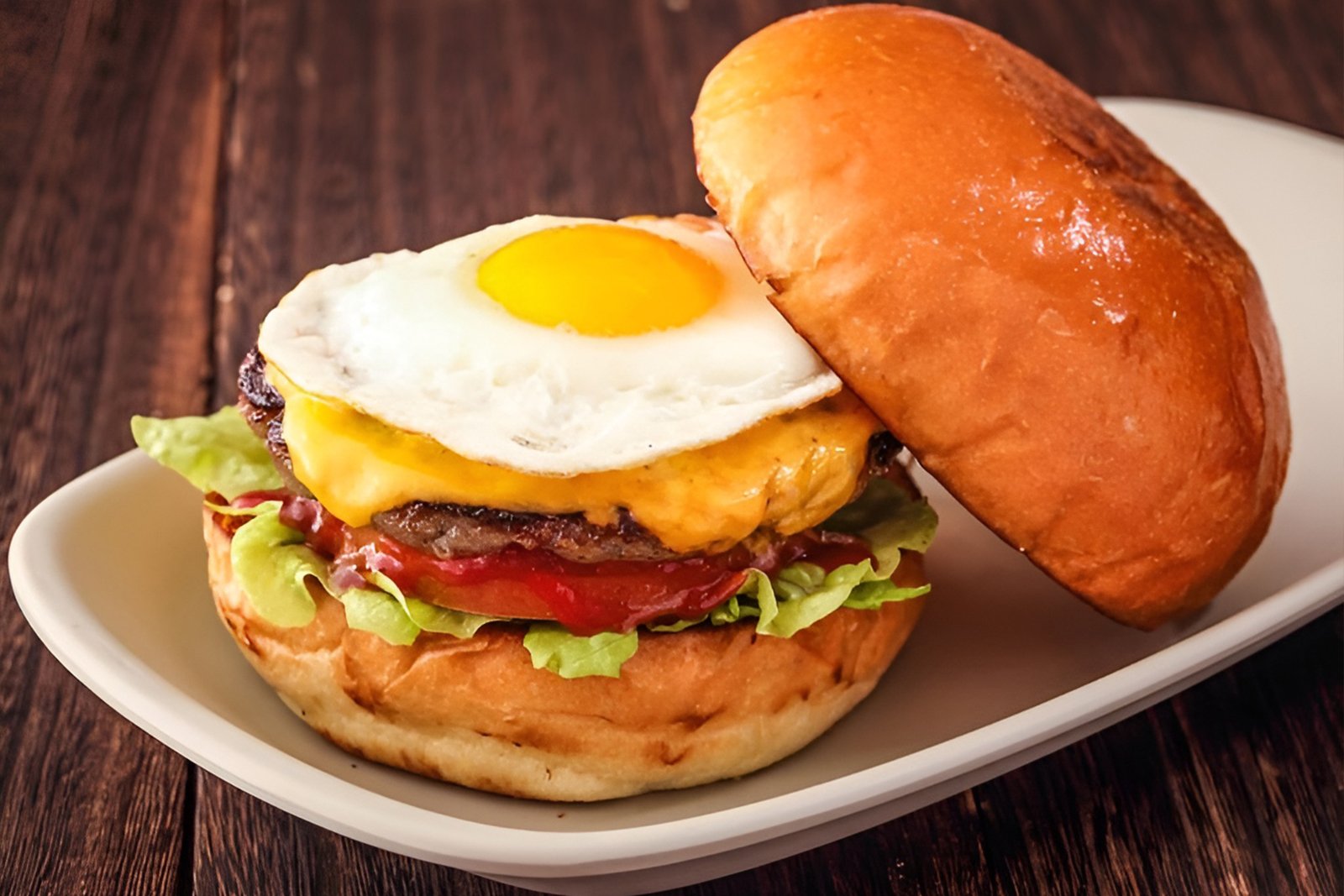 Our classic burger with melted cheese and a fried egg. Served with french fries.