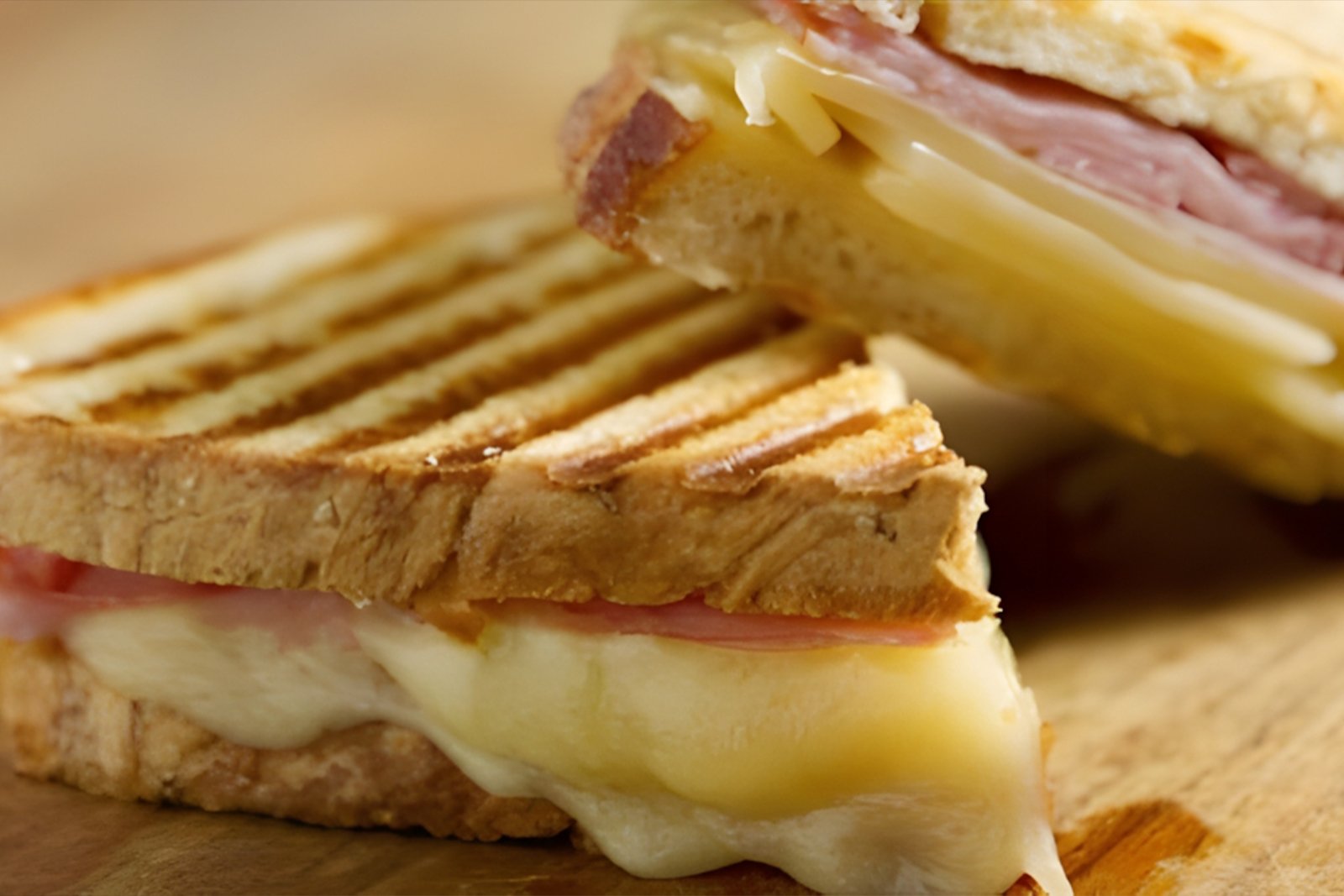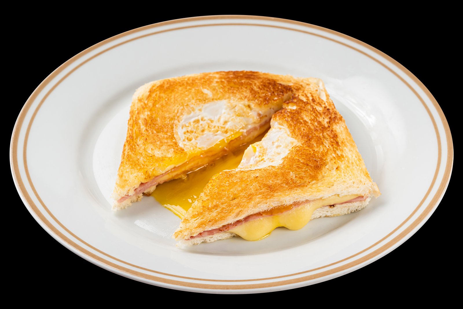 Our hot ham and cheese sandwich, upgraded with a fried egg.